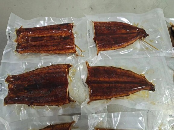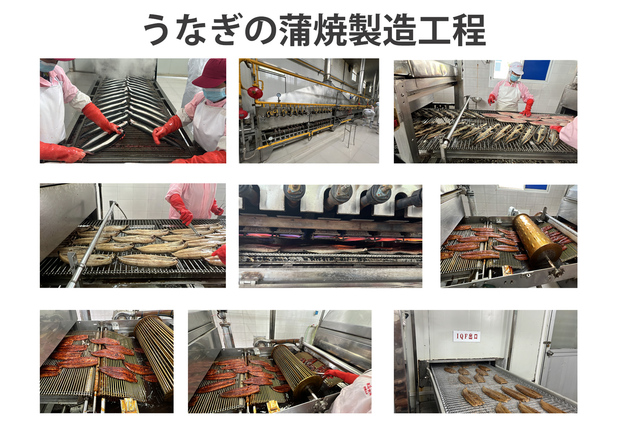 生産工場はISO9001およびISO22000の食品安全管理認証を取得し、HACCPに基づく厳格な品質管理を導入。安全・安心を徹底した体制で鰻蒲焼を製造しています。日本市場向けの味づくりにもこだわり、日本製の蒲焼き生産ラインを採用。10年かけて開発した特製タレは、解凍後でも苦味が出ず、まろやかな甘辛の味わいを実現しています。原材料の仕入れ段階から泥臭みを抑える工夫を行い、さばき工程では骨がほぼ残らないよう丁寧に処理。身の断面は均一で、焼き上がりの姿も美しく仕上がります。炭焼き工程では遠赤外線の力で皮は香ばしく、身はふっくら柔らかく。焼きとタレ付けを3回繰り返し、最後に仕上げタレをまとわせることで奥深い味に。焼成から冷凍まで中心温度を厳密に管理し、均一で高品質な製品を実現。香料や着色料は控えめに使用し、鰻本来の旨味を最大限引き出しています。