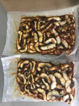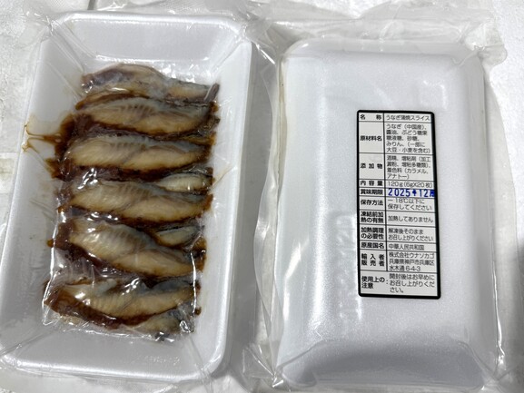 原材料:うなぎ(中国産)、醬油、ぶどう糖果糖液糖、 砂糖、みりん、(一部に大豆・小麦を含む)