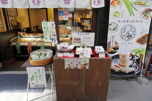 出雲大社正門前の直営店舗では、全国からいらっしゃるお客様に出雲漬物の魅力をお伝えしております。