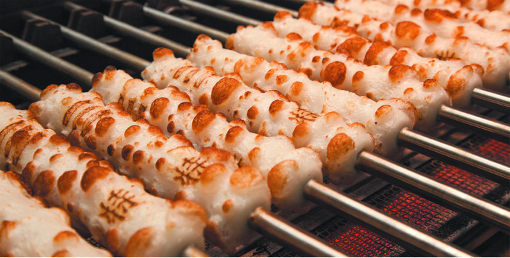 主力製品は、「焼ちくわ」。伝統製法ならではの、しっかりとした食感と、滑らかさを感じ焼ちくわです。