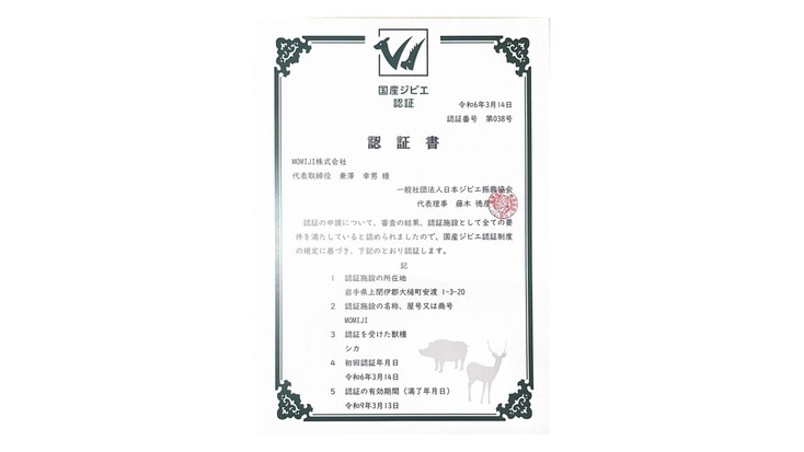 MOMIJI株式会社は、岩手県大槌町を拠点に、国産ジビエ認証を取得した鹿肉の提供に特化しています。認証取得により、捕獲から処理、加工まで厳格な衛生管理とトレーサビリティが保証され、消費者は安心して高品質な鹿肉や加工品を楽しめます。独自の捕獲基準と迅速な処理により、柔らかく臭みの少ない鹿肉を実現。生肉だけでなくジャーキーや缶詰、レトルト食品、ドッグフードなど多彩な加工品も展開しています。また、鹿革など副産物の利活用やハンター育成、ジビエツーリズムによる地域活性化にも取り組み、単なる食品企業にとどまらず、地方創生や持続可能な資源活用に貢献しています。他社にはない国産ジビエ認証取得と地域連携型の事業モデルが、MOMIJIの大きな差別化ポイントです。