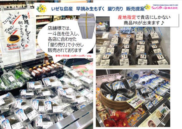 伊是名島産早摘み生もずくをはじめ多数のラインナップがございます。
