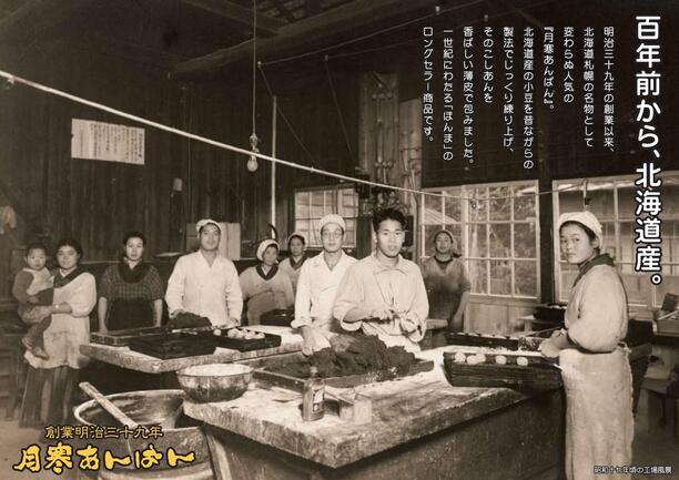 弊社は明治39(1906)年にツキサップ(現在の月寒)の地で創業して以来今日に至る迄、看板商品である「月寒あんぱん」をはじめ「玉ドーナツ」「月寒ドーナツ」等半世紀以上に渡るロングセラー商品を製造販売しております。