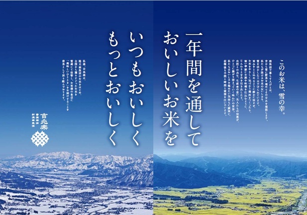 契約農家が丹精した美味しいお米を、天然雪冷気の雪蔵保管でいつも美味しく、凍る直前の氷温熟成でもっと美味しく、食卓に『美味しいひととき』をお届けする事を信条として、取り組んでおります。