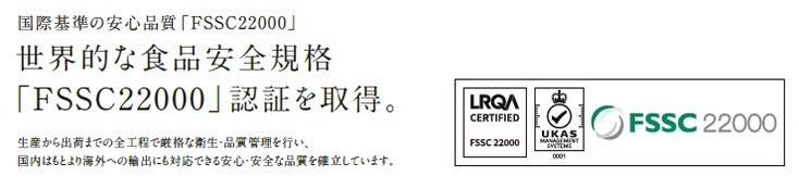 世界的な食品安全規格 「FSSC22000」認証を取得