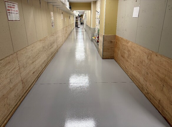 工場のコンクリート床やスーパーマーケットのバックヤード床は、油汚れや様々な汚れに悩まされているのが現状となっています。コンクリート用コーティングシステムはコンクリート床に高硬度のコーティング層を形成し、様々な汚れの付着を予防し美観向上を図ることができます。