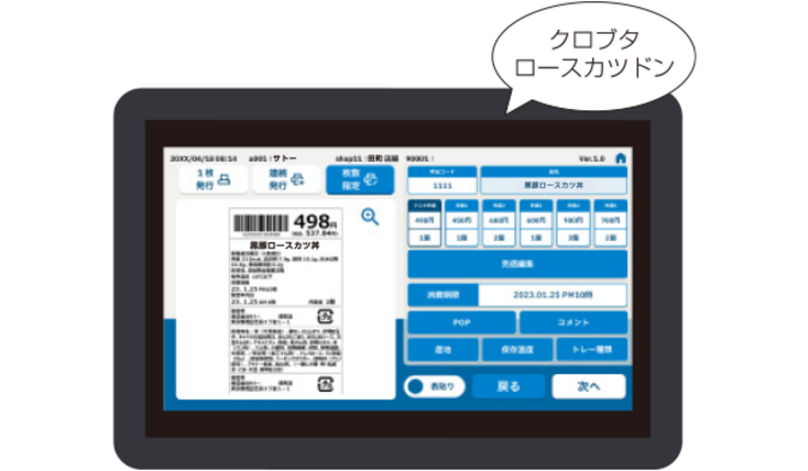 特長2 ラベルプレビュー/商品名の音声読み上げ(商品確認・発行指示)