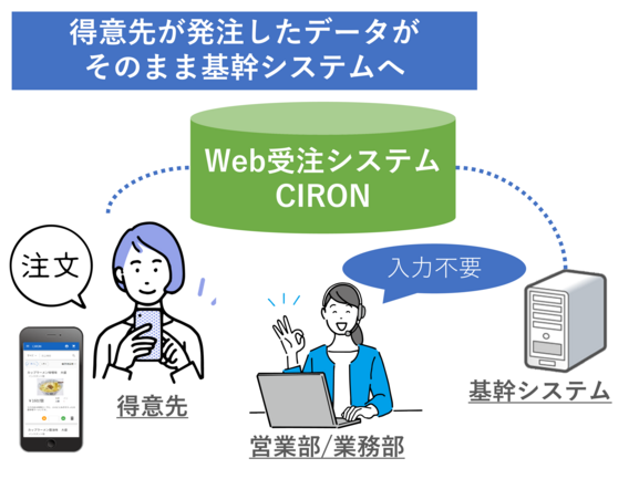 得意先様がスマホ・タブレット・PCから注文してくれます。そのデータをそのまま受注データとして利用できますので、卸売業・メーカー様の入力工数がなくなります。故にBtoB型Web受注システムの最大のメリットを活かせます。
