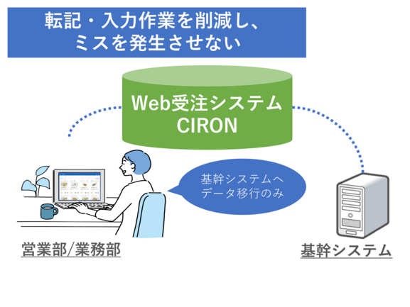 得意先様の注文情報や受注番号等のデータを作り、基幹システムに取り込みます。故に卸売業・メーカー様の転記・入力ミスはなくなるだけでなく、データチェックの要員や残業代などの人件費を削減できます。