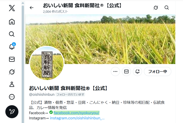 X(旧ツイッター)「おいしい新聞 食料新聞社®」