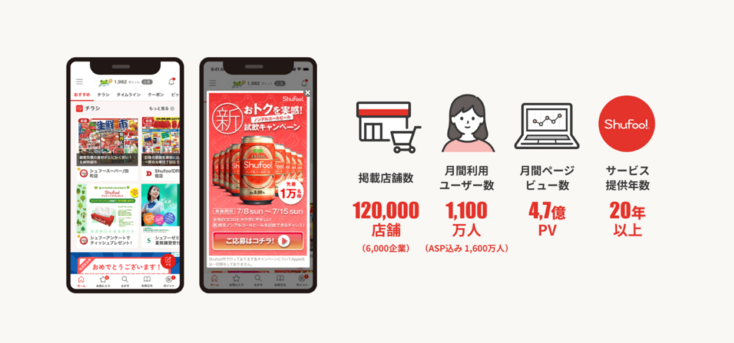 Shufoo!は利用者数・掲載店舗数ともに国内トップクラスの電子チラシサービスです。