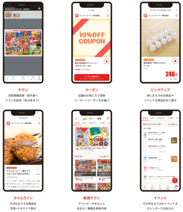 お得情報がたっぷり掲載されたチラシをはじめ、6つのコンテンツを、