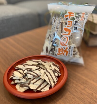 南部煎餅のサクサクとした食感と塩味に甘いチョコレートの組合せが絶妙です。