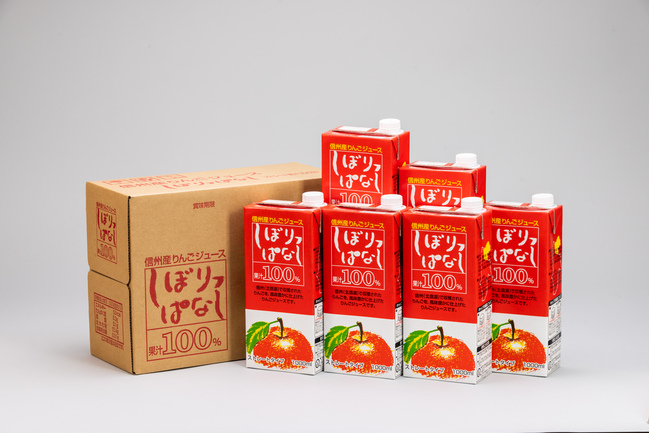 使用品種はふじ主体の厳選ブレンド。充分な甘みと適度な酸味のバランスがりんごの美味しさを引き立てます。