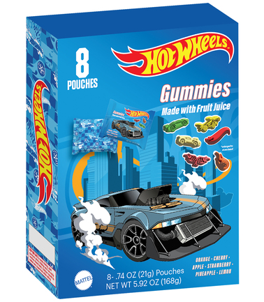 Hot Wheels™ shaped gummies feature six dynamic vehicle shapes and six fruity flavors. Colorful designs and recognizable shapes create a fun, nostalgic candy experience for fans of all ages and brings excitement.