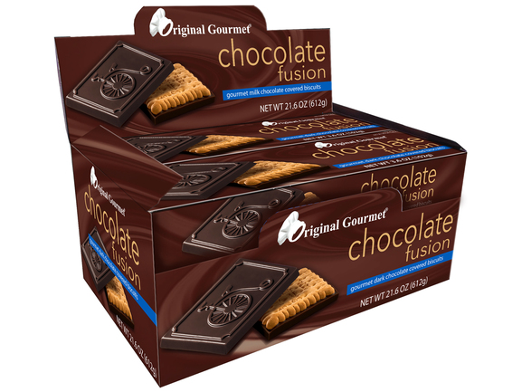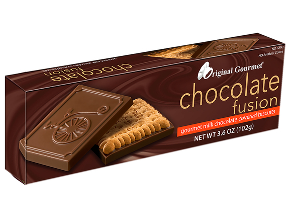 Experience gourmet milk Chocolate Fusions—rich milk chocolate layered on a crisp biscuit. Every bite blends creamy chocolate and satisfying crunch for a truly delightful chocolate moment.