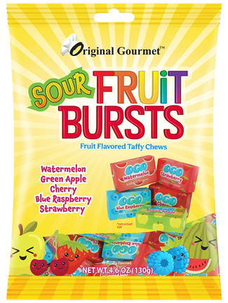 Sour Fruit Bursts—5 fruity flavors that explode with chewy fun.
