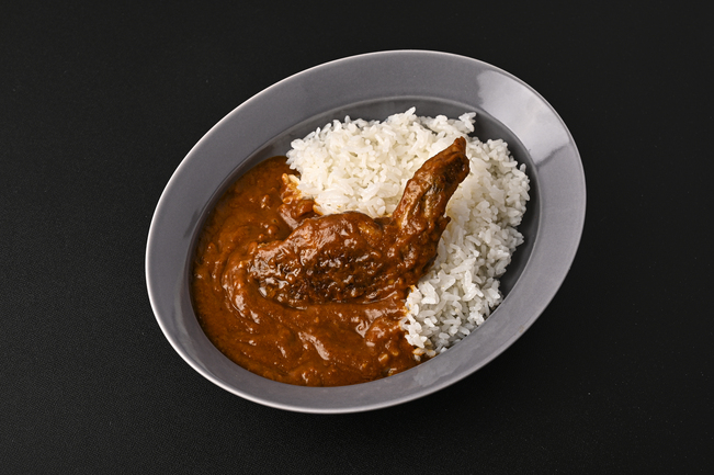 鶏の手羽先の中骨を抜き、馬渡特製の餡を詰め込んだ手羽餃子を、トマトベースのカレーと煮込んだ商品です。