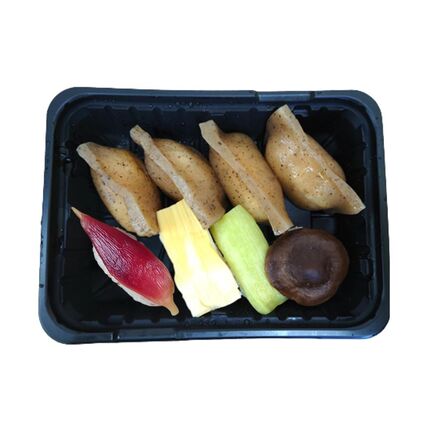 土佐の田舎すしは酢飯にゆず果汁を使い、ネタに茗荷、リュウキュウ、筍、椎茸、蒟蒻などをつかった柚子に香る、プラントベースの寿司です。本品はその特徴を踏まえて、Vegan,Halal対応いたしました