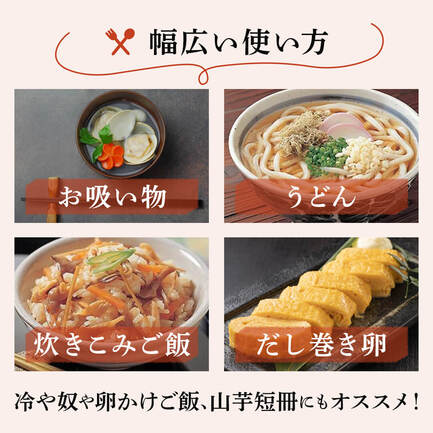 鍋物・おでん・お吸い物・お雑煮・天つゆ・炊き込みご飯・うどんなど