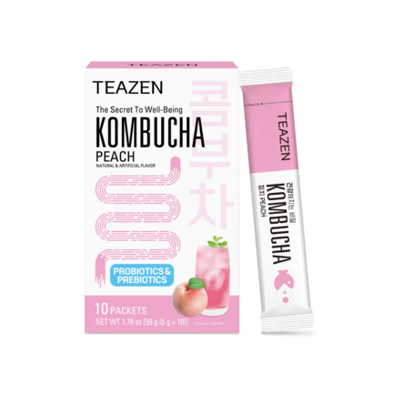 コンブチャとは緑茶や紅茶を抽出した後、酵母菌(SCOBY)と一緒に発酵して作られた発酵飲料です。TEAZENコンブチャは粉末タイプの手軽な個包装スティックなので、持ち運びしやすく冷たいお水や炭酸水に溶かすだけで気軽にお楽しみ頂けます。12種類の乳酸菌入りで1包あたりわずか15キロと低カロリー。
