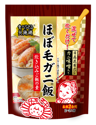 メディアで話題のカネテツ「ほぼ毛ガニ(カニ風味かまぼこ)」を使用した炊き込みご飯の素。ほぼ毛ガニをふんだんに入れ、日高昆布だし、カニ味噌で仕上げたカニ風味満載の美味しさ。