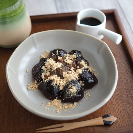 さらにみりんシロップをたっぷりとかけて。きなこの香ばしさともとても合います。