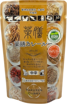 鎌倉薬膳アカデミーの監修を受けて開発されたカレールー。3種類の薬膳食材とカレースパイスを融合させた、香り豊かなスパイスカレールーです。