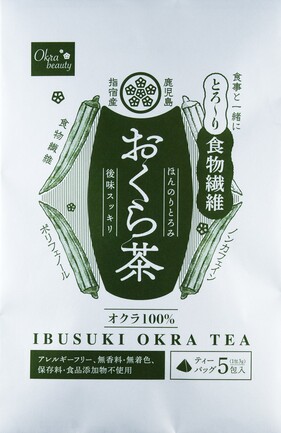 日本一の産地である鹿児島県指宿産オクラを100%使用し、規格外品を活用したサステナブルな製品です。添加物を一切使用せず、オクラ特有のネバネバ成分と豊富な食物繊維・ポリフェノール・葉酸を保持しており、健康や美容を意識する幅広い層に適しています