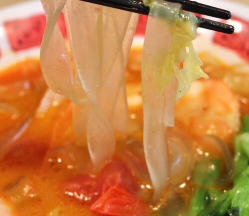 ヘルシーで栄養価の高い、さつまいもでん粉使用して作られた春雨。もっちり食感で煮崩れしづらい麺。(4mmタイプ)