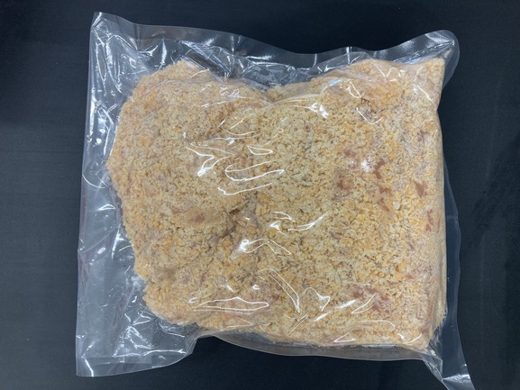 鶏肉(国産)、パン粉、小麦粉、馬鈴薯澱粉、食塩、砂糖、こしょう、植物性たん白、ぶどう糖/加工澱粉、調味料(アミノ酸)、膨張剤、香辛料抽出物、イーストフード、V.C、(一部に小麦・大豆・鶏肉を含む)