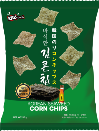 香ばしいとうもろこしで作ったトウモロコシ粉に、韓国産の海苔を合わせた「K-コンチップス」はマヨネーズやわさびを添えていただくと、さらに美味しさが引き立ちます。