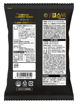 韓国の伝統的なお菓子である“キムブガクを現代風にアレンジし、サクサクとした食感と香ばしい味わいをいつでもどこでも手軽に楽しめるように開発したスナックです。