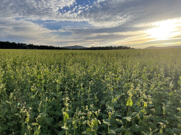 弊社は北海道雄武町にて韃靼そば「満天きらり」の有機栽培をしており、全国でも韃靼そばの一大産地として取り組んでおります。韃靼そば「満天きらり」は従来品種と比較して苦味が非常に弱く、ポリフェノールの一種であるルチンが普通蕎麦の100倍以上含まれているのが特徴になります。