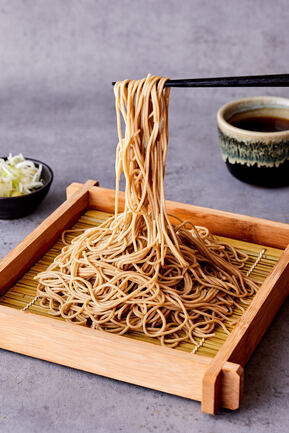 北海道雄武町にて有機栽培された韃靼そば「満天きらり」と北海道産小麦「ゆめちから」を使用して細麺でのど越し良く作り上げた商品です。韃靼そば由来ルチン、ケルセチン(ルチン換算として)が含まれるので、内臓脂肪を減らす機能があります。