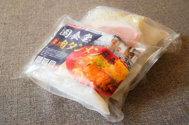 ① 内容量:冷凍肉タンメン(冷凍麺170g、スープ400ml、冷凍豚ロース肉80g、タレ50ml)