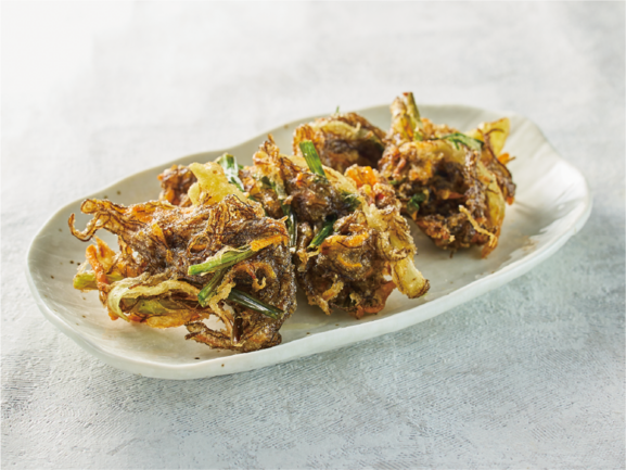 具だくさんのもずく天ぷら