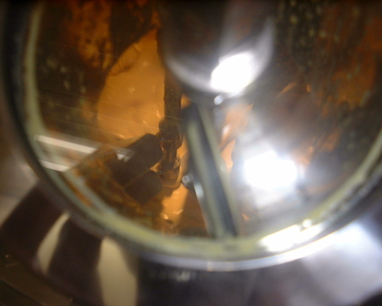 (画像は真空乳化機の中でマヨネーズが出来る様子ですが、のぞき窓越しですので画質が悪くなっています)