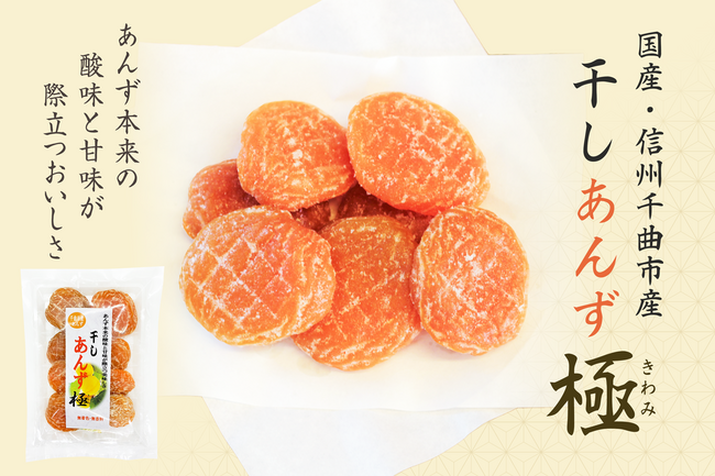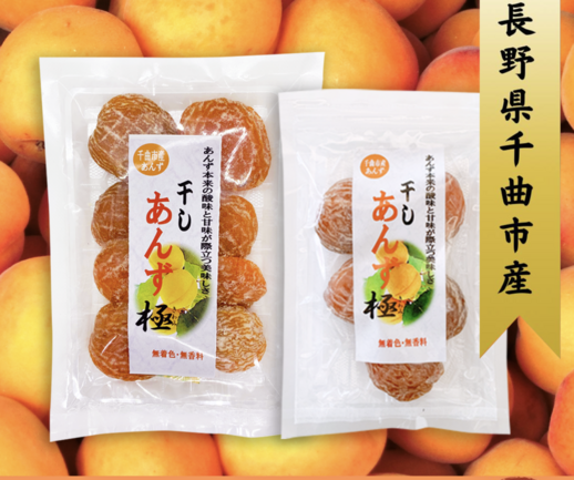 地域の農産物を活かし、杏ネクターや干し杏など信州発の加工品を開発。千曲市で22年培った産直のネットワークを強みに、観光土産からギフト需要まで幅広く提案しています。