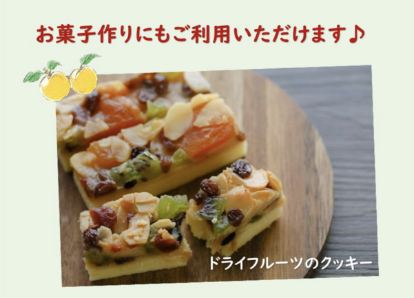そのままおやつはもちろん、刻んでヨーグルトやグラノーラに、クリームチーズに添えてワインのお供にも。焼き菓子(パウンドケーキ、スコーン)への混ぜ込みや、サラダのトッピングにもおすすめ。 “甘酸っぱさ”が料理全体の輪郭を立てます。