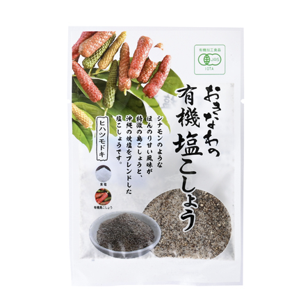 沖縄の海水塩に、シナモンのようなさわやかな香りが特徴の島こしょうをブレンドした、沖縄原料100%の有機塩こしょうです。凝固防止剤等の添加物を使用せず仕上げました。
