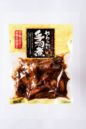 旨み豊かな国産鶏手羽を直火で炙り焼き、自家製醤油ダレでじっくりと煮込んだおかず、おつまみに美味しい一品。熟成された旨みが特徴の国産親鶏を使用。常温保存可能で湯煎かレンジで温めて食べられる、便利で美味しい一品です。