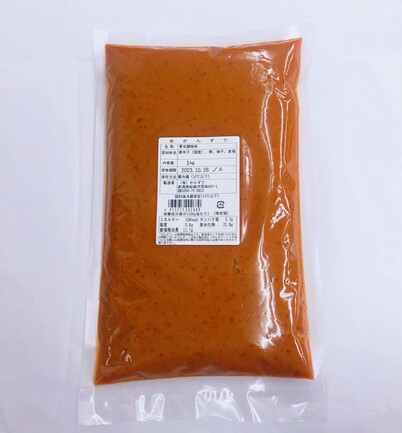 通常のかんずりは常温販売用商品の為、加熱処理をし、糀の発酵を止めておりますが、こちらは冷蔵販売用商品の為、加熱処理をしていない生の状態のかんずりです。加熱品より、風味が強く、また水分が飛んでいない為、やわらかく・みずみずしく、料理にも溶けやすいかんずりです。