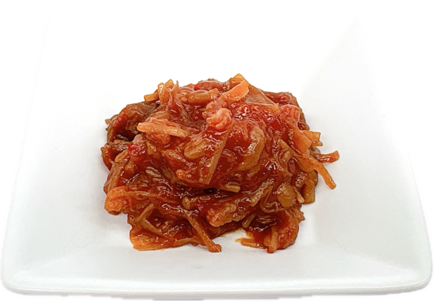 甘辛仕立てで辛いものが苦手な方でもお召上がり頂ける程度に味付けで、かんずりの旨味もしっかり味わえるえのき茸です。