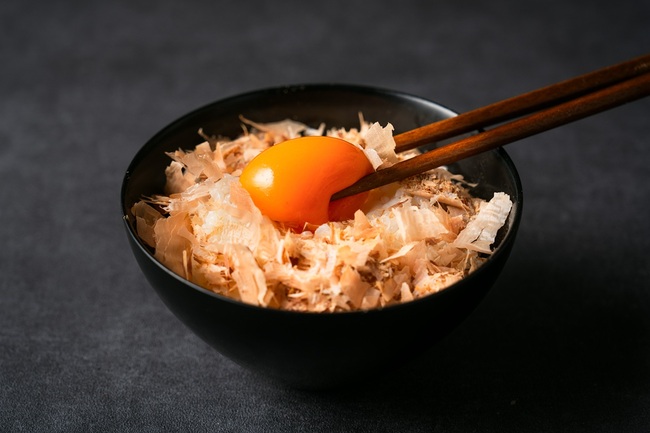 富士の恵みと鰹の旨味が詰まった極上濃厚卵。