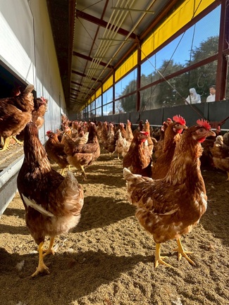 鶏は屋内の立体構造だけでなく、天候に左右されずに明るい空間で自由に歩き回れます。土や光、外気を感じながら過ごすことで、鶏本来の行動欲求が満たされ、ストレスの少ない生活が可能になります。