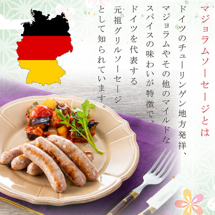 ドイツのチューリンゲン地方発祥、香草マジョラムやその他のマイルドなスパイスの味わいが特徴で、ドイツを代表する元祖グリルソーセージとして知られています。