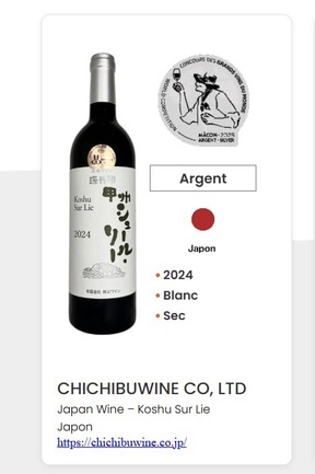 2024年ビンテージはConcours des Grands Vins du Monde 2025 にて銀賞(Argent)