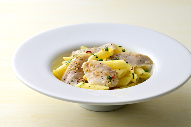 くせのない白身魚の金目鯛がハーブの香りと相まって旨味に深みと個性が加わりました