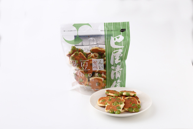 ありそうでないグリンピースのお煎餅。えんどう豆を揚げているのでグリンピースが苦手な方にもお召し上がりいただいてます。